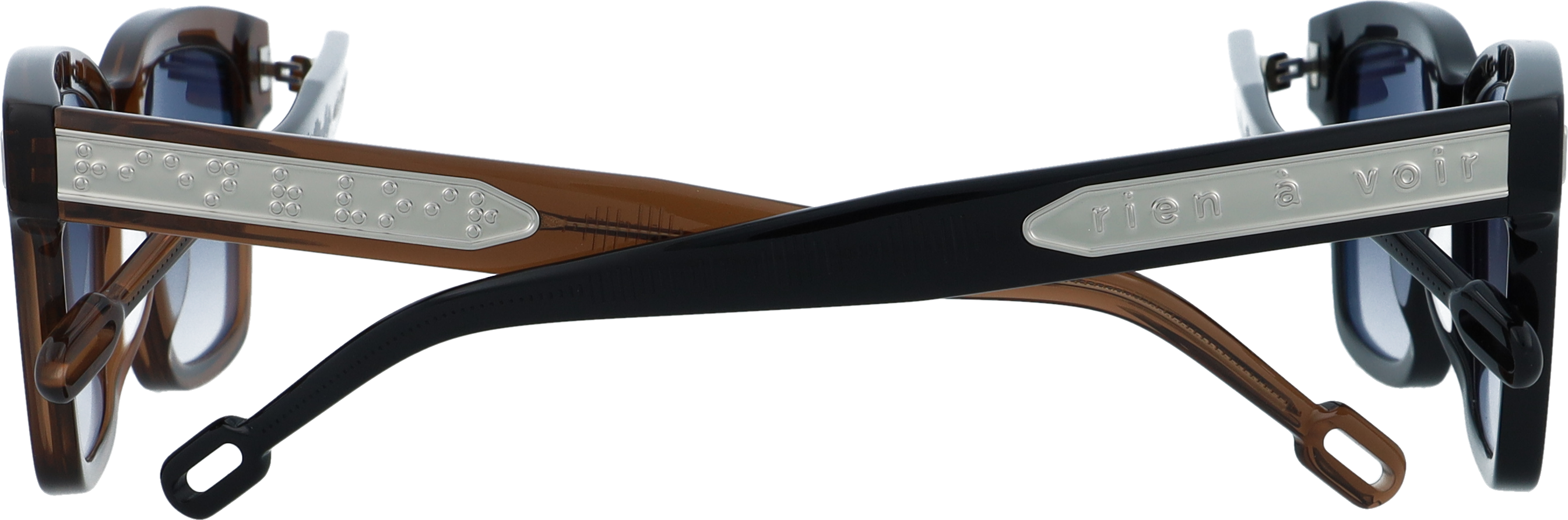 Along the side of the frame, the words “Rien à Voir” appear in Braille, the tactile writing system used by people with visual impairments to read through touch.