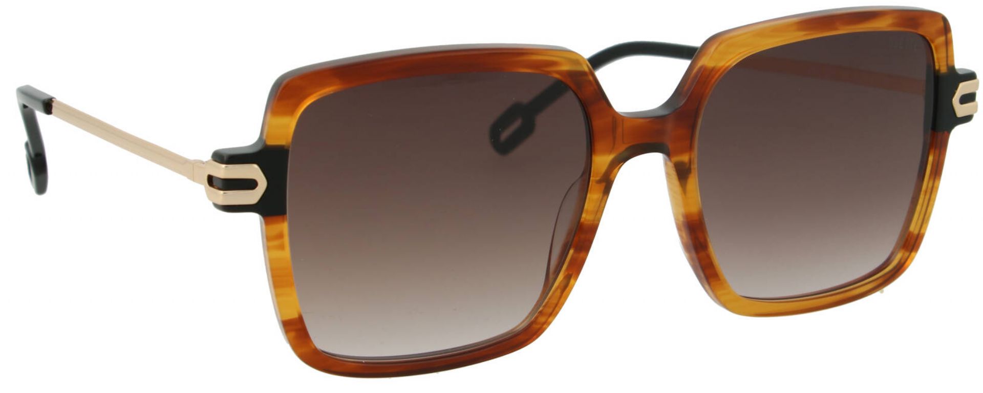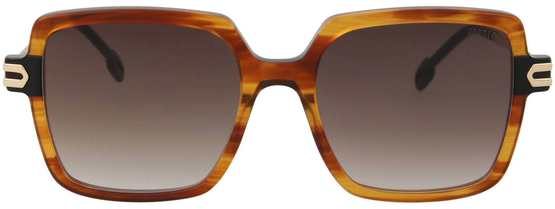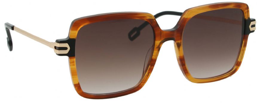 Dit montuur heeft een vierkante, robuuste vorm met strakke lijnen en een subtiel afgeronde bovenkant. Het metalen detail bij de scharnieren voegt een uniek accent toe aan het ontwerp. //-